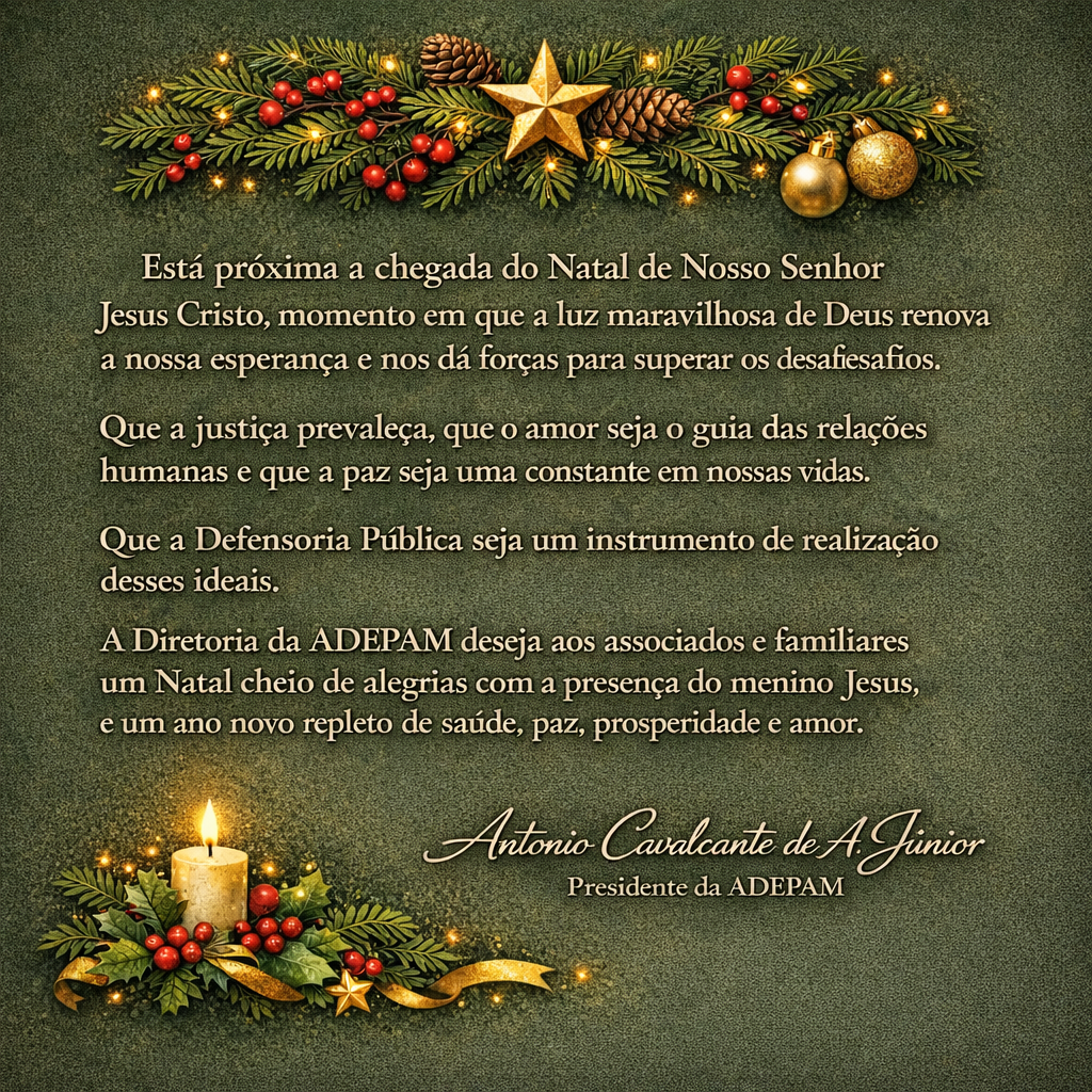 A diretoria ADEPAM deseja aos associados e familiares um Natal cheio de Alegrias com a presença do menino Jesus e um ano novo repleto de saúde, paz, prosperidade e amor.